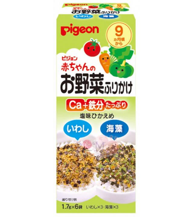 ~ 適合: 約9個月或以上 ~ 容量: 10.2g (1.7g x 6包) ~ 小魚伴飯食品1.7g x 3包 ~ 鰹魚鬆伴飯食品1.7g x 3包 產品介紹: ~ 採用5種黃綠色蔬菜、小魚的拌飯料,讓寶寶打開食慾、覺得飯飯更好吃。 ~ 本食品不含色素、防腐劑、香料。 ~ 內含有鈣、鐵等營養成份。 使用方法: ~ 以湯匙取適量拌飯料,放在粥、軟飯或白飯上,稍微攪拌後即可讓寶寶食用。