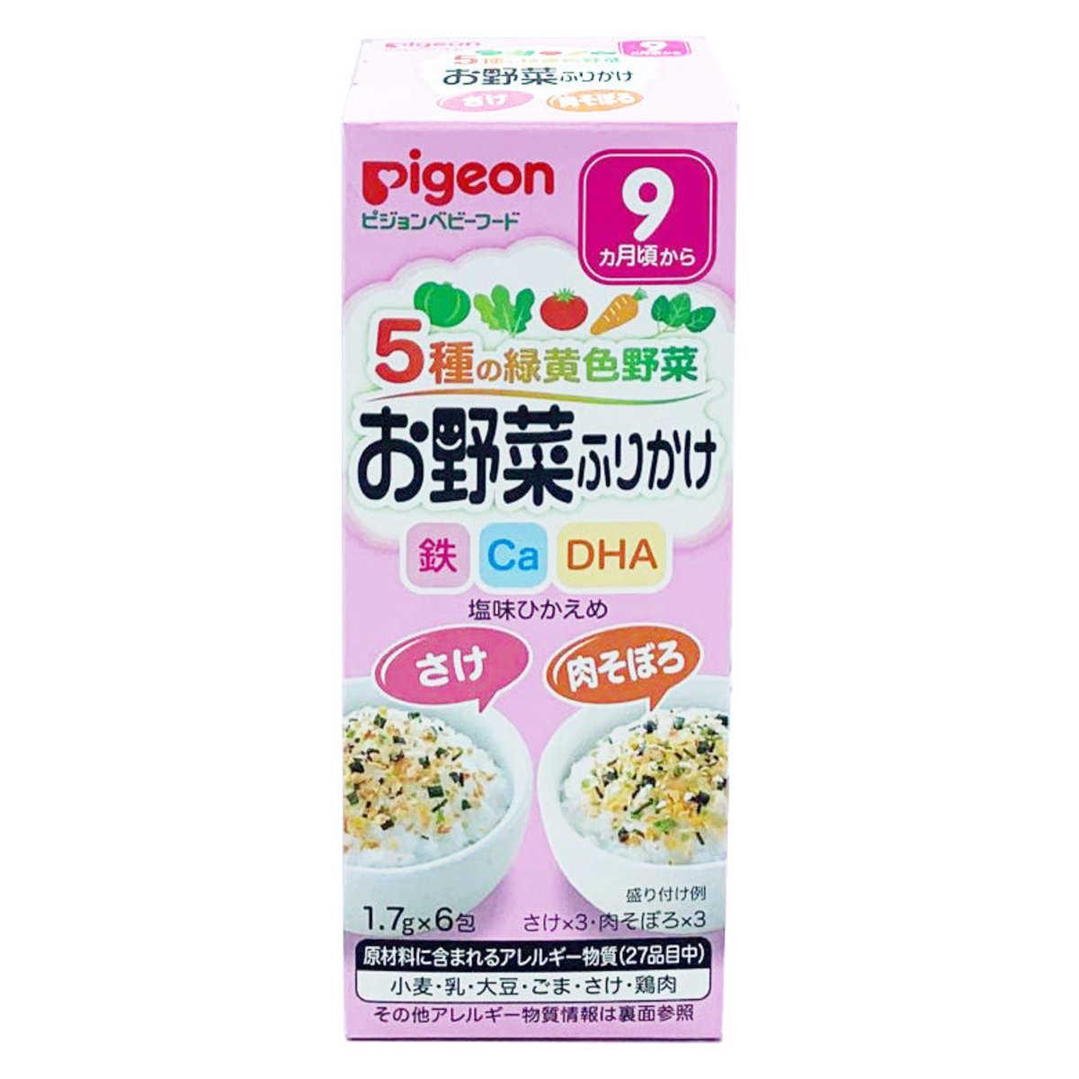 適合: 約9個月或以上 容量: 10.2g (1.7g x 6包) 鮭魚伴飯食品1.7g x 3包 肉碎伴飯食品1.7g x 3包 產品介紹: ~ 採用5種黃綠色蔬菜、小魚的拌飯料,讓寶寶打開食慾、覺得飯飯更好吃。 ~ 本食品不含色素、防腐劑、香料。 ~ 內含有鈣、鐵等營養成份。 使用方法: 以湯匙取適量拌飯料,放在粥、軟飯或白飯上,稍微攪拌後即可讓寶寶食用。
