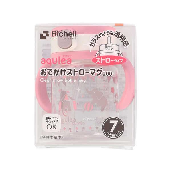 日本 Richell - Aqulea - 吸管水杯 (粉紅派對) 200ml 7月+ VIP會員9折
