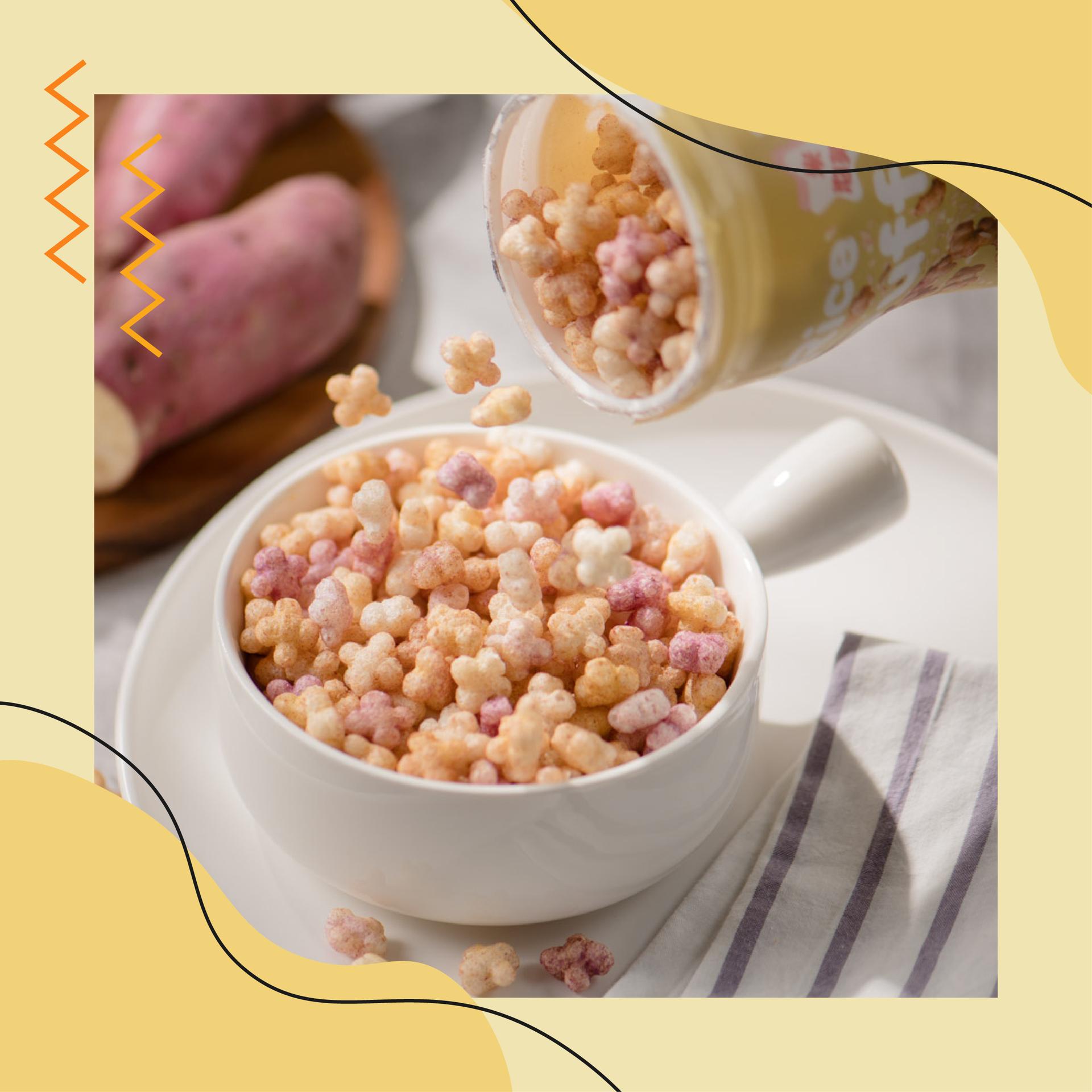 採用馬來西亞國產白米、糙米製成。 搭配南瓜、紫薯創造出多層風味 米香X蔬果碰出新滋味,一次滿足2種風味。 100%無添加任何調味,取自食材原味。