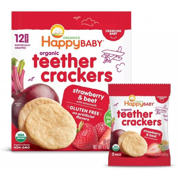 Happybaby 有機牙仔米餅(草莓紅菜頭)48g 24片 #VIP會員9折