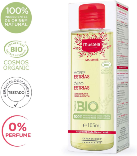 MUSTELA 妙思樂 妊娠防紋油,專為孕婦及新任媽媽配製,有助預防妊娠紋,蘊含獨特的天然來源成份組合:羽扇豆醇(Lupeol),專利天然成份,使懷孕期間更能抵抗肌膚的伸展,有助預防妊娠紋。石榴籽油,玫瑰果籽油和猢猻木油,有助滋養,增強彈性及柔軟肌膚。
