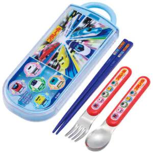 一套筷子、叉子、勺子和一個可以用洗碗機清洗的盒子。