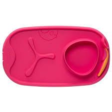 一體式孤型餐碗有助小朋友學習加固及自行進食;柔軟矽膠外圍適合濕潤食品使用 (乳酪、蔬菜泥、湯等),餐墊附有深型湯匙,柔軟的孤型餐碗讓小朋友易於舀取食物;餐墊另一面劃分成三個間隔,把食物分開,學習健康進食,避免挑食情況。