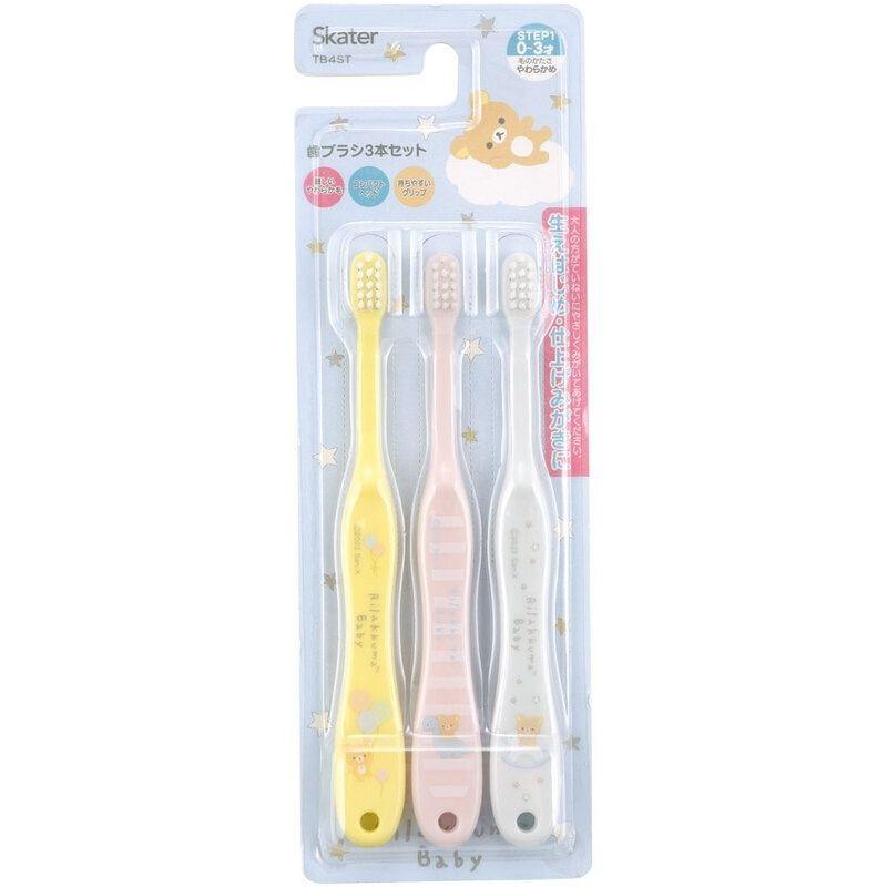 日本 SKATER 鬆弛熊 0~3歲牙刷 3支 連保護套