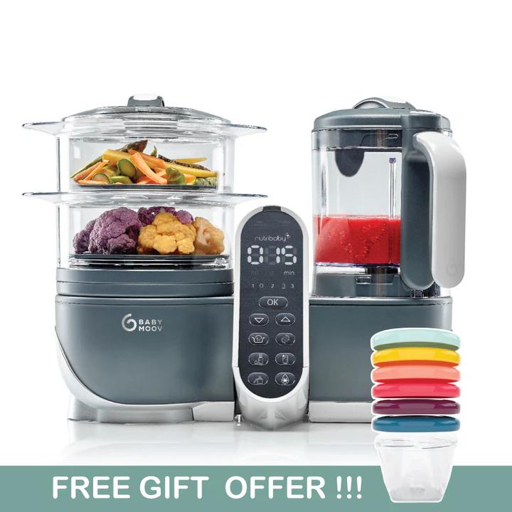 Babymoov Nutribaby(+) 6合1 蒸煮食物攪拌調理機 - 工業灰 (贈品:Babybols 食物儲存碗 180ml x 6)